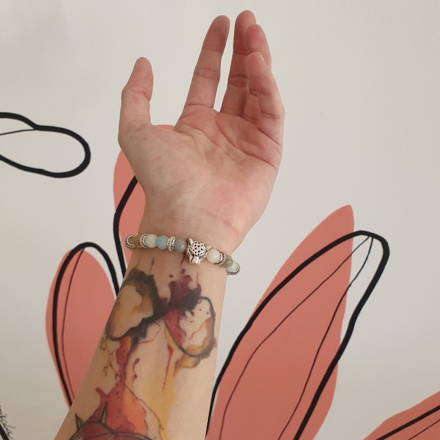 La boutique Little Turtle reverse 10% sur chaque vente de bracelet en amazonite à l'association française "AWPA", qui vient en aide aux animaux errants du Sri Lanka.