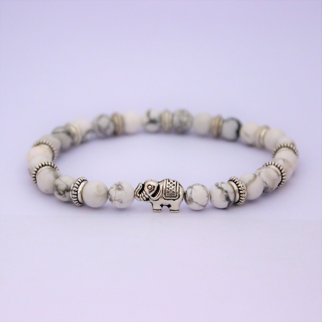 Bracelet "Bien-être & confiance" en howlite - Perle éléphant argenté