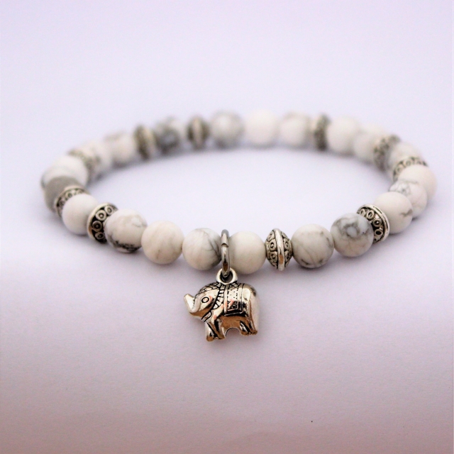 Bracelet "Bien-être & Confiance" en howlite - Charm éléphant argenté