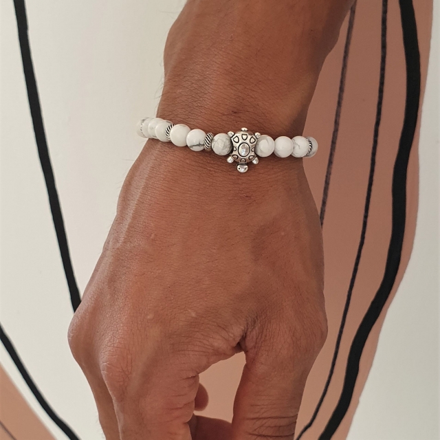 Bracelet "Bien-être & Confiance" en howlite - Tortue argentée