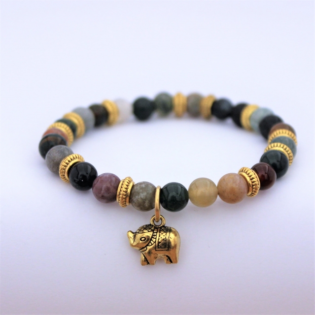 Bracelet "Confiance en soi" en agate indienne - Charm éléphant doré
