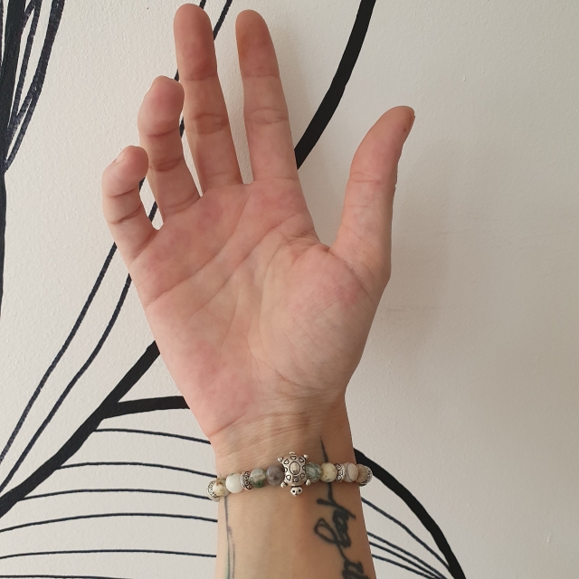 Bracelet "Nature & Calme" en agate mousse - Tortue argenté