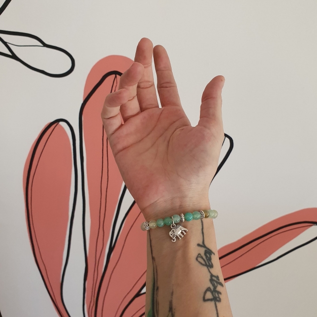 Bracelet "Equilibre & Stabilité" en agate verte - Charm éléphant argenté