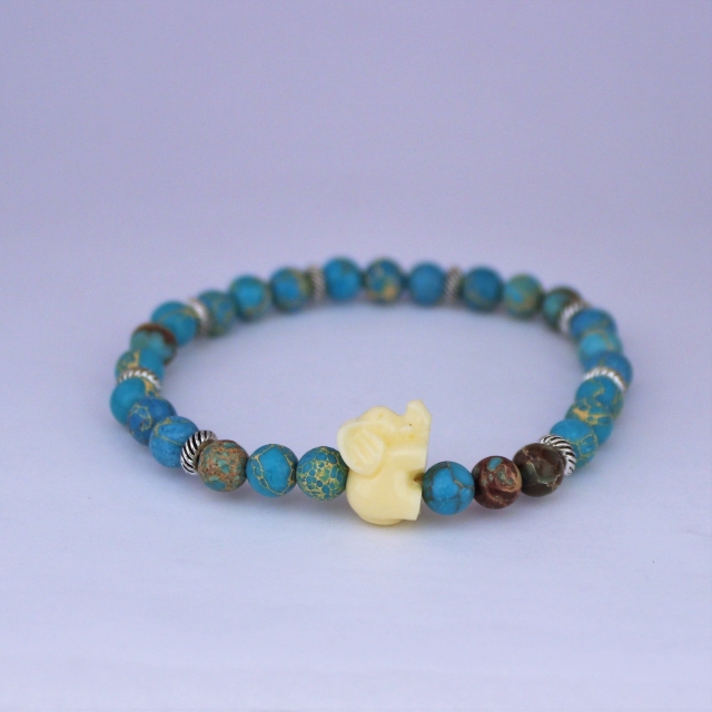 Bracelet "Equilibre & Apaisement" en jaspe bleu - Eléphant en résine