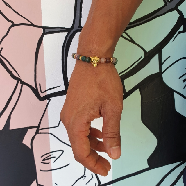 Bracelet "Confiance en soi" en agate indienne - Léopard doré