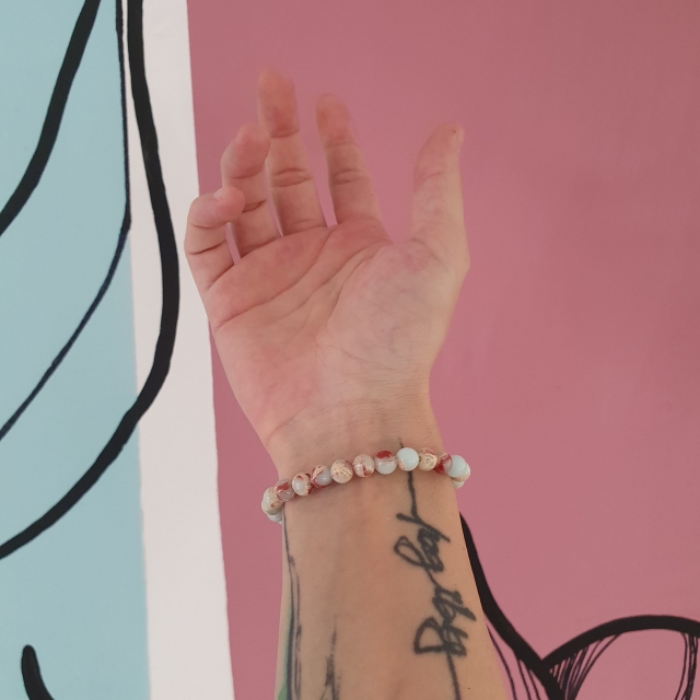 Ce bracelet est entièrement réalisé à la main en pierres naturelles de jaspe impérial de 6 mm de diamètre.