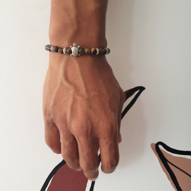 Bracelet "Protection" en œil de tigre - Tortue argentée
