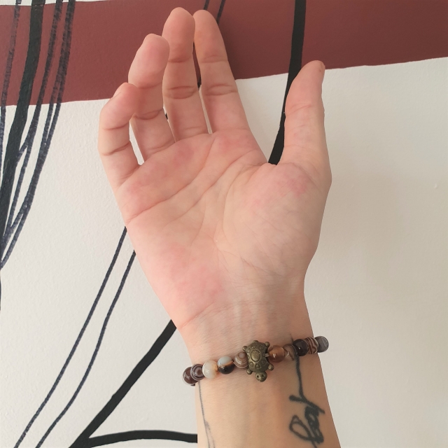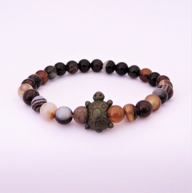 Bracelet "Chance & Calme" en agate rubanée - Tortue bronze